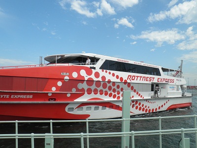 Heute geht es nach Rottnest Island; von Perth ist aber alles ausgebucht, also mit der S-Bahn ab nach Fremantle, wo mehr und größere Fähren fahren. Wir kriegen einen Platz auf der 10:00 Uhr Fähre und kaufen ein Ticket für den Hopp-On-Hopp-Off Inselbus; vor der Überfahrt kaufen wir noch Strandequipment für unterwegs: Strandtasche, Hüte, Badetücher; alles als One-Way für den ersten großen Teil gedacht und entsprechend billig erstanden.