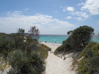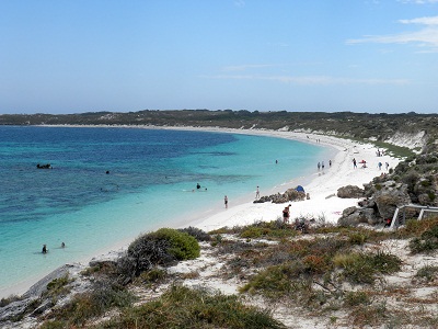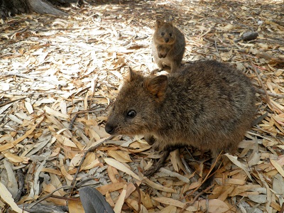 Der Inselbus ist bei weitem das überfüllteste Verkehrsmittel, das wir in Australien kennen lernen werden. Völlig überfüllt und mit offenen Türen wird die Fahrt angetreten. Die Strände, insbesondere im Süden, sind schon spitze. Auf dem Rückweg zum Hafen begegnen uns dann doch noch Quokkas, eine Inselspezialität: Eine Art Mini-Kängaruhs, die an übergroße Rattenhamstereichhörnchen erinnern (und Namensgeber der Insel sind: Rottnest = Rattennest).