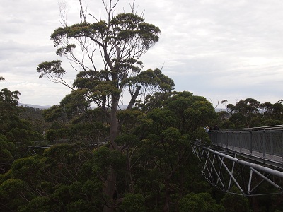 Eigentliches Highlight des Tages ist aber das Valley of the Giants in den Kerri Wäldern; dort gibt es einen Tree Top Walk, wo sich eine Eisenkonstruktion über 30m in die Höhe schraubt zwischen die Baumwipfel (natürlich gemacht) und den bodennahen "Ancient Walk" (natürlich auch gemacht). Weiter in Richtung Pemperton steht dann noch der Gloucester Tree (ein riesiger Kerri), mit seiner erkletterbaren Feuerwacht-Plattform (haben wir uns dann nicht getraut).