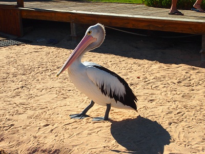 Wir haben die morgendliche Delphinfütterung angesehen (sehr touristisch) und sind über eine lokale Emu Herde (Muttertier und Junge) gestolpert, die sich auf dem Resortgelände frei bewegen.