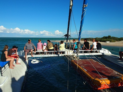 Vor der Abreise aus Monkey Mia steht noch die zweite gebuchte Bootstour. Fotografieren von Tieren ist schwer, aber es ist eigentlich alles dabei: (Kleine) Haie, Schildkröten, Dugongs (Australische Seekühe), Delfine, Seeschlangen, Fische. Sogar ein Badestop ist drin.