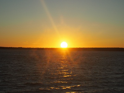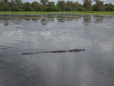 Nach dem obligatorischen Mittagessen (Kaltes Buffet, eine exakte Kopie vom Vortag) gibt es eine Bootsfahrt mit Aboriginee Guide auf den Yellow Rivers. Dort lernen wir, was ein Billabong ist (ein Minisee, der durch Austrocknung aus einem größeren Wassersystem entsteht) und sehen neben diversen Pflanzen auch ein großes Salzwasserkrokodil sowie einen Seeadler in freier Wildbahn.