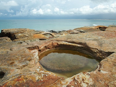 Heute ein früher Start, um den empfohlenen Besuch von 'Gantheaume Point' vorzunehmen; bei Ebbe und günstigen Gezeiten kann man dort Dinosaurierspuren sehen. Die Ebbe bekommen wir, die günstige Gezeitenlage nicht; trotz Ebbe ist alles von Wasser überspühlt. Wir sind ca. 1 Woche zu spät, wie der Tidenkalender im Visitor Guide ausweist.