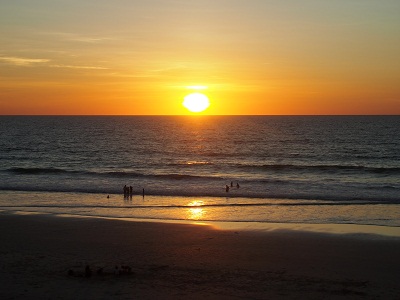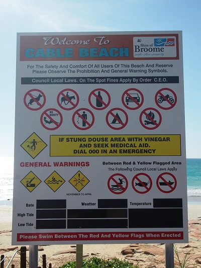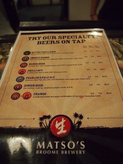 Am Cable Beach ist schwmmverbot wg. Blue Jellyfish, also geht es zur Fütterung in den nahegelegenen CrocodilePark, um pünktlich zum Sonnenuntergang wieder am Cable Beach zu sein. Mit dem letzten Bus (gleicher Busfahrer) geht es zum Hotel und zum Abendessen erneut zu Matsos, wo es neben Bier auch gutes Essen gibt.