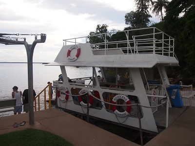 Nach dem Mittagessen machen wir eine Bootstour, die mit Umsteigen in die ersten beiden Schluchten ("Gorges") führen wird. Wir sehen ein (kleines) Süsswasserkrokodil, eine Schildkröte sowie diverse Vögel. Danach geht es zurück. Die Fahrt war interessant, aber unter dem Strich in der Jahreszeit nicht wirklich emfpehlenswert