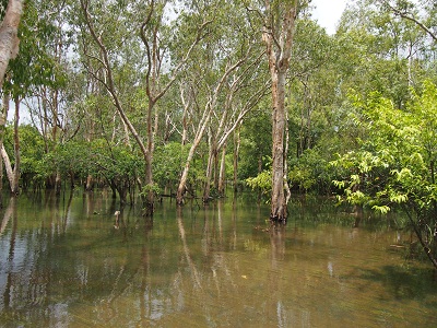 Über den Arnhem Highway geht es nach Kakadu (sprich: Kakadju); immer noch sind ein paar Straßen so überflutet, dass der Bus auf der Hauptstraße durch teils knietiefes Wasser in Senken muss.