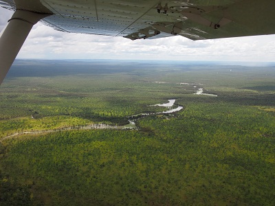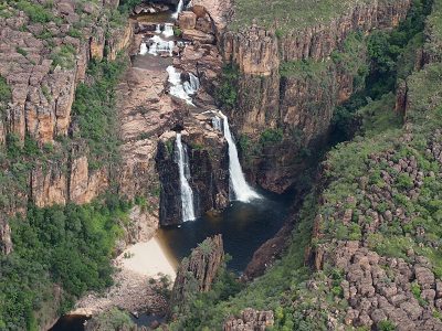 Anstelle des "Aboriginee Cultural Center" buchen wir (als einzige) einen Rundflug; mit der kleinen Propellermaschine geht es zu Twin Falls, JimJim Falls und den eigentlich-noch-namenlosen-Double Falls. Ein aufziehendes Unwetter zwingt uns zu einem leichten Umweg; insgesamt hat der Flug den Tag deutlich aufgepeppt (allerdings zu einem Aufpreis).